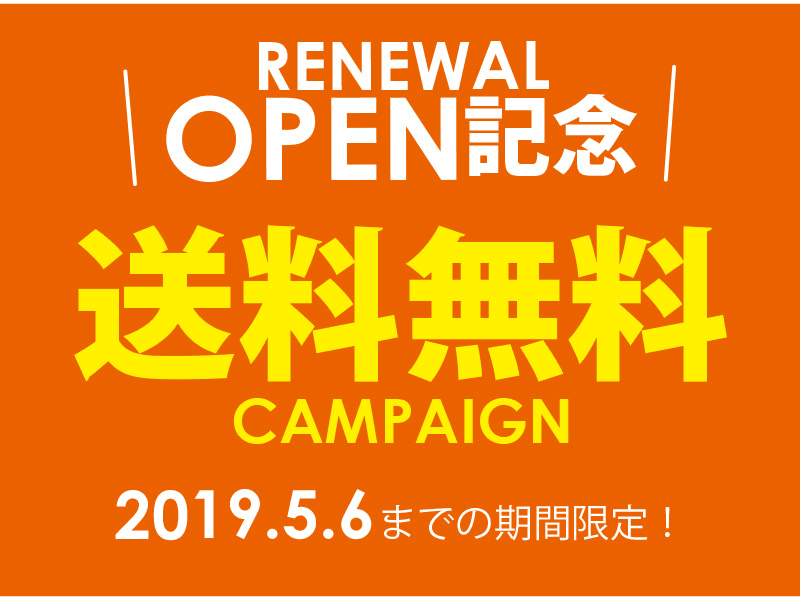リニューアルオープンを記念して、本日から2019年5月6日までの期間限定で送料無料キャンペーンを開催いたします!!