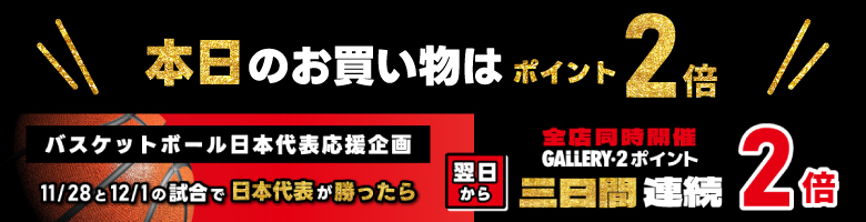 【全店舗同時開催】バスケットボール日本代表応援企画!11/28、12/1の試合に勝利したら翌日から3日間ポイント2倍!