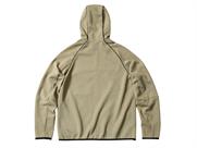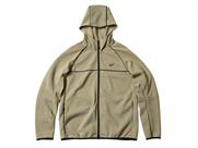 伸縮性のあるストレッチフリース生地を使用したフード付きフルジップパーカー。
