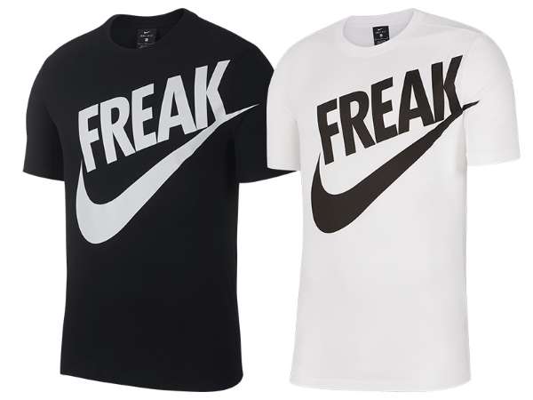 出身地のギリシャを思わせるカラーリングや"Giannis Antetokounmpo"の頭文字を組み合わせたロゴ、彼の愛称である"GREEK FREAK(奇抜なギリシャ人)"から取った「FREAK」のロゴなどをシンプルに配置したアパレル。