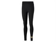 コットン・ポリウレタン素材のレギンス。左裾にメタリックのロゴ。タイトながら快適なフィット感。