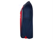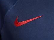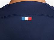 ブルーを基調としたジャージーの中央からずれた位置にあるレッドからブルーへのグラデーションは、パリのアイコニックな光が夜空に溶け込んでいく様子をイメージしています。
