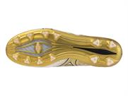 アウトソールはα Triangle Stud採用で、縦へのスピードにフォーカス。また、踵部分のミズノエナジーがクッション性を高めハードワークに貢献。
