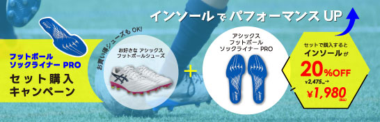 ASICSフットボールシューズとフットボールソックライナーPROを同時に購入で【ソックライナーPRO】が表示価格より20%OFF!キャンペーン開催中