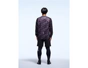 少し細身なシルエットが特徴のロングトレーニングトップ。リサイクルポリエステル100%のドライメッシュ素材を採用したSDG品番。私たちの心の中にある「向上心」をパターンとして落とし込んだ一着。