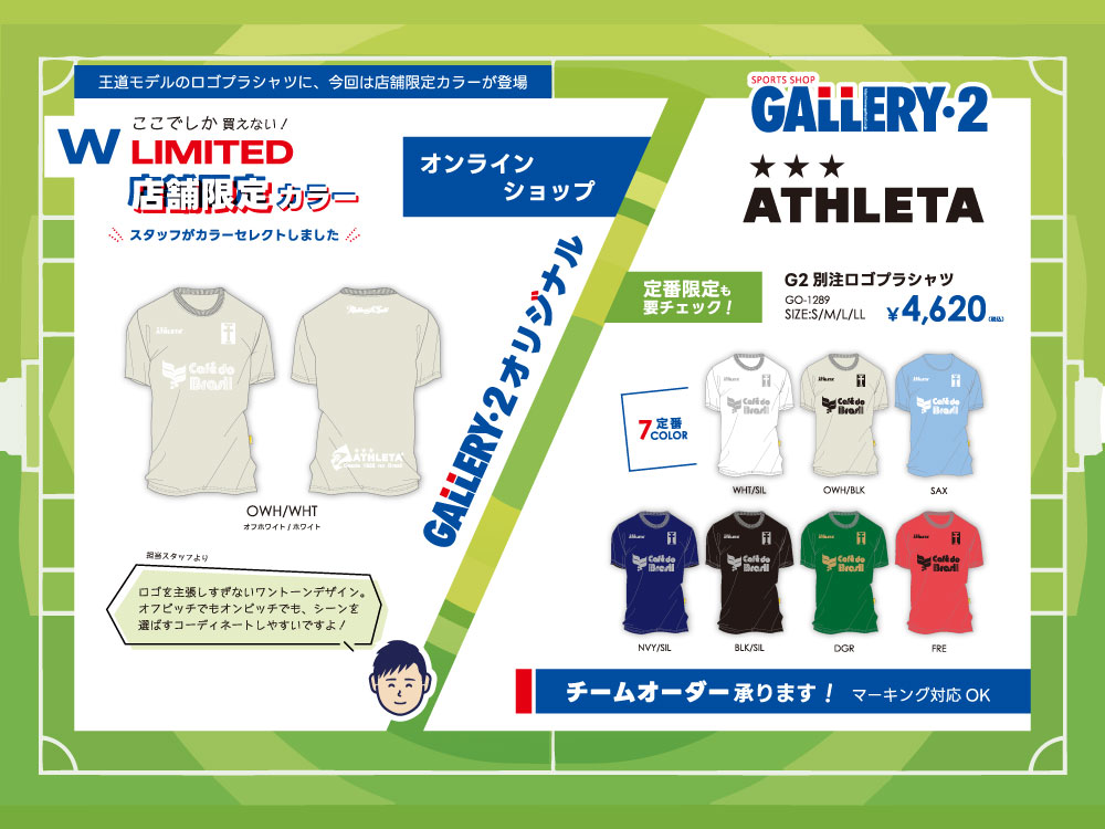 ATHLETA G2別注ロゴプラシャツ オンラインショップ限定カラー【オフホワイト/ホワイト(1110)】と定番カラーを同時に購入でハンドタオルプレゼント!