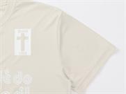 オフホワイトに白ロゴを重ねた、ロゴを主張しすぎないワントーンデザイン。