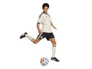 また、チームワークとコミュニティの精神を体現するadidasロゴとチームエンブレムが誇らしげにあしらわれている。