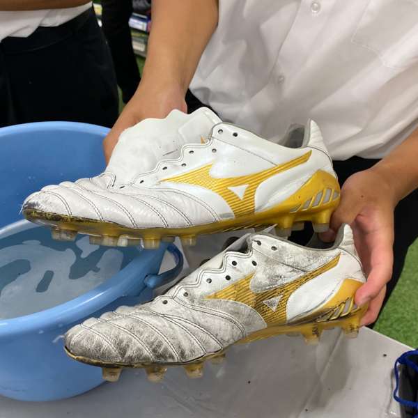 学生さん達に体験していただいたようにまずはシューズを【洗ってみよう!】
