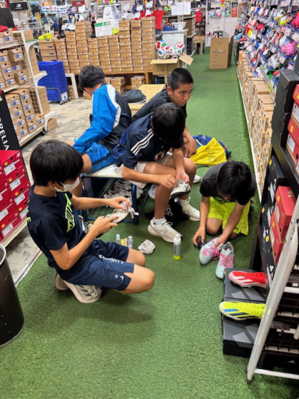 選手6名に海老名店にご来店いただき、フットボールシューズメンテナンス講習会を開催しました。