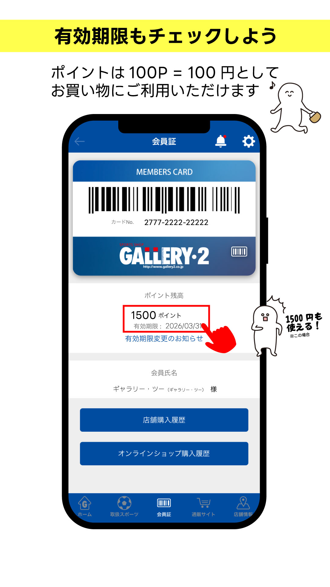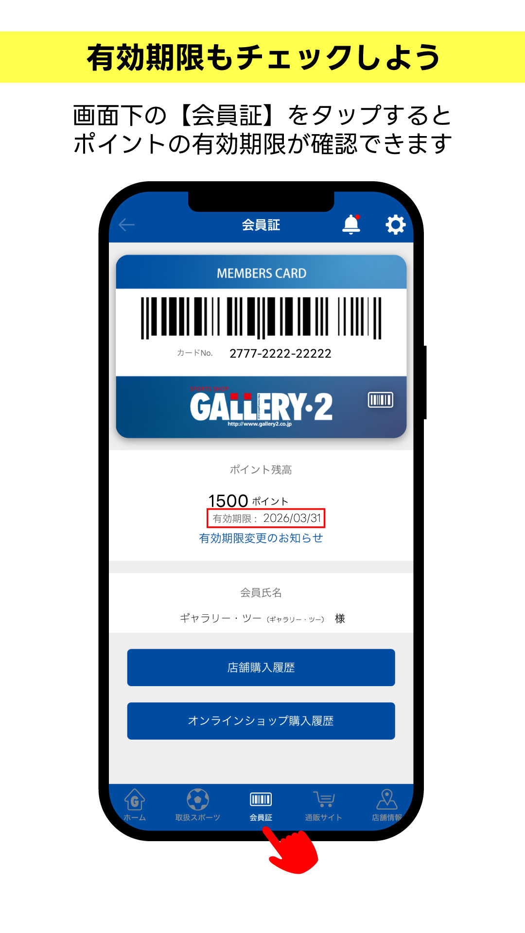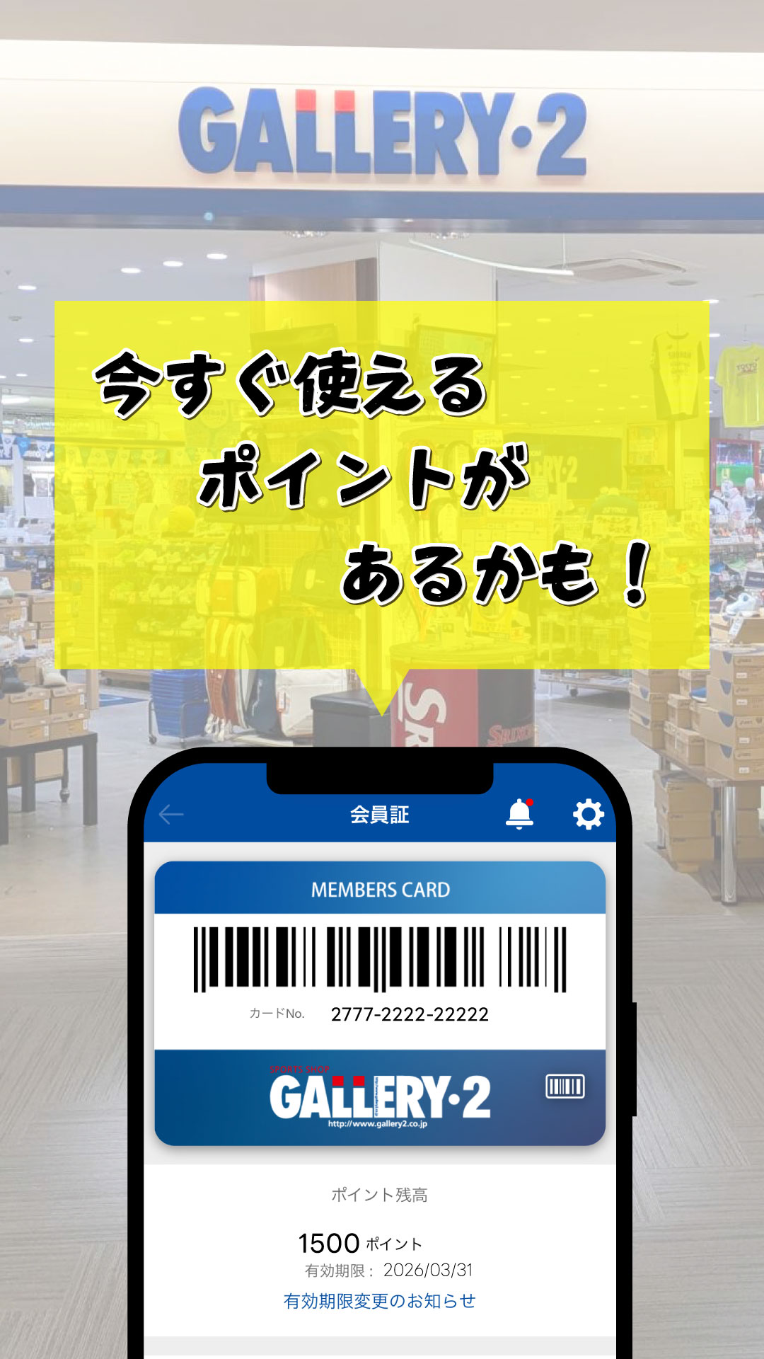 2026.03.21 眠っているポイントありませんか?GALLERY・2ポイントは有効期限をチェックして逃さず使おう! 船橋ららぽーとTOKYO-BAY NorthGate店 渋谷店1F 渋谷店2F 新宿アドホック店 吉祥寺パルコ店 海老名ビナウォーク店 港北ノースポート・モール店 港南台テスコ店 オンラインショップ GALLERY・2公式アプリ会員のみなさまにご案内です(^^)/ 眠っている【GALLERY・2ポイント】ありませんか~!? もしかしたら…期限切れ間近!なんてことも。 ▼ポイント&有効期限の確認方法は動画でもご紹介しています! 貯まったポイントはオンラインショップでもご利用できます! ※ユーザー登録が必須となります GALLERY・2公式アプリのご登録はコチラ▼ お気に入り店舗&カテゴリーのフォローお願いします オンラインショップ【メルマガ登録者限定クーポン配信中】まずはユーザー登録を♪