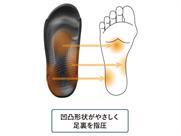 甲部には足の動きに追従する溝と通気性アップのための穴を配置し、快適に履くことができます。