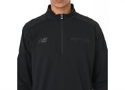 90年代のクラシックフットボールからインスピレーションを受けたBLACKOUTコレクション。袖の異素材切り替えが特徴のハーフジップトップ。ストレッチ性のニット素材を使用し、右胸のNBロゴ、左胸のNBロゴグラフィックをクールなカラーで展開。トレーニングやプレーで活躍するアイテム。