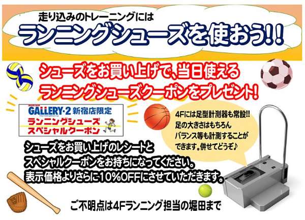 購入レシートとクーポンをランニングシューズ購入時に新宿店4Fにてご提示ください。