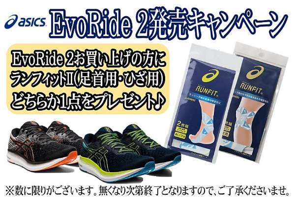 ランニングコーナーでは話題のEvoRide 2をお買い上げの方にテーピングサポーターの