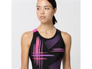 高い撥水性とストレッチ性、縦にも横にも自由に伸びてどんな体型にもフィットする、泳ぎやすいレディースニースキンです。