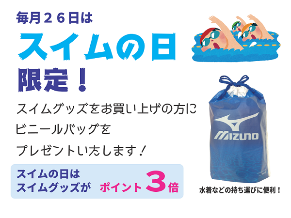 スイム用品お買い上げで スイムメーカー ビニール袋 プレゼント!