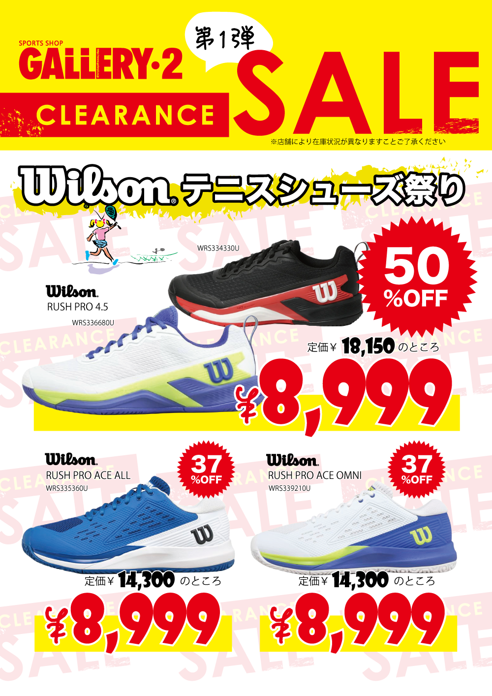 2026.01.22 クリアランスセール第1弾! ~ テニス編 ~ 海老名ビナウォーク店 港北ノースポート・モール店 オンラインショップ お買い得も、楽しみもドンドン増える!クリアランスセール【第1弾】 テニスのお買い得アイテムはコチラ!!気になるアイテムはお早めにGETしてくださいね。 ■オンラインショップでもご購入いただけます■ ※店舗ごとに展開モデル、展開サイズ等異なりますので 詳しくは通販事業部もしくは各店舗までお問い合わせください。 取扱店舗