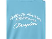 脇の縫製ラインを背中側にずらすことで床との接触によるレシーブ時の違和感を軽減するなど、動きやすさにも配慮。右胸にはCロゴ、背中には「Authentic American Athleticwear(オーセンティック アメリカン アスレチックウェア)」と「Champion(チャンピオン)」を手書き風の書体でデザインしたグラフィックをプリント